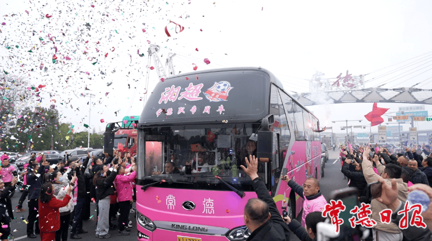12月6日,“湘超”常规赛最后一轮,常德客场对阵长沙,前往长沙为球员加油的球迷多达4000人,十几台大巴车、数百台自驾车集结在贺龙体育场,粉色军团制造的“粉浪”震惊四座,让观赛的长沙人有在常德看球的错觉。尤其是常德队扳平比分的那一刻,全场身着粉色球迷服的常德球迷振臂高呼,呐喊加油的气势给了球员们满满的信心。那一刻,每一声呐喊、每一个动作都饱含对家乡球队的热爱与真诚。“我们的球队太优秀了,远征客场算什么累?必须为他们加油!”助威团负责人张学军感慨道。常德球迷助威团由市足协领导,现有固定球迷近600人,分10个小组,每组都各司其责,鼓手、旗手、喊话人尽职尽责,曹新建、夏高洪、赵时友、张建、刘朝晖、龙显辉、彭淋慧等人无私奉献,做了很多琐碎的工作。一周两次排练,大家都是克服万难,丝毫没有马虎。动作的整齐划一,声音力度的控制,和球员的互动等,大家保持着高度的默契,甘当球队“第12人”。