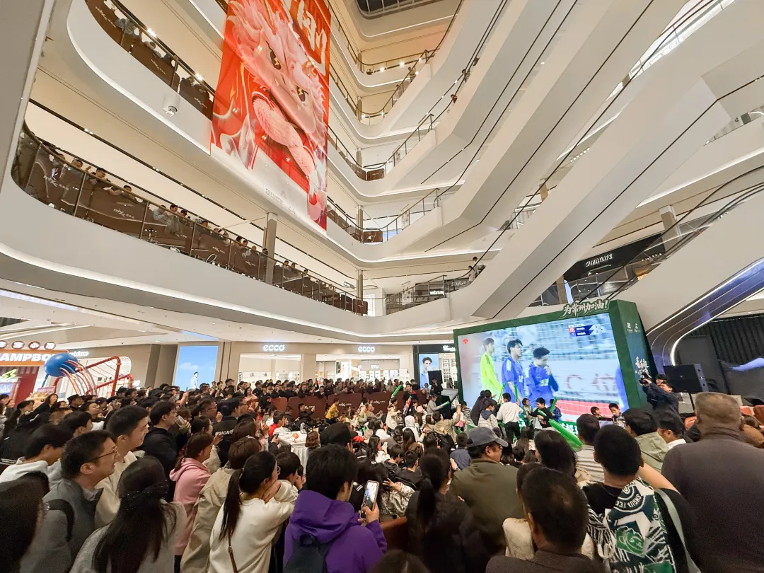 当晚,万象城“风巷”青年发展型街区,“苏超”揭幕战通过大屏转播准时开启。