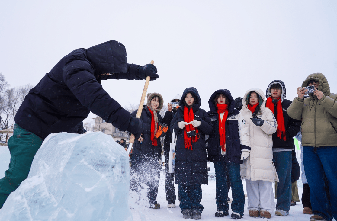 活动设置“冰雪文旅实践”“民俗文化体验”两大主题,将新媒体产品创作贯穿活动流程,全体学员既做体验者也做传播人。在“冰雪文旅实践”环节,学员代表走进“中国冰村”主题体验区,观赏唯美冰景,体验冰壶、冰爬犁、冰浮等10余项冰雪项目。在“民俗文化体验”环节,学员们参与铁锅炖大鱼、冰糖葫芦等传统美食制作,亲手体验冬捕捞鱼等冬季特色民俗活动。活动期间,全体学员参加“欢腾牡丹江 冰雪嘉年华”宁安市“四季村晚”暨小朱家“冰村”启动仪式,现场观看民俗表演,感受乡村文化活力。