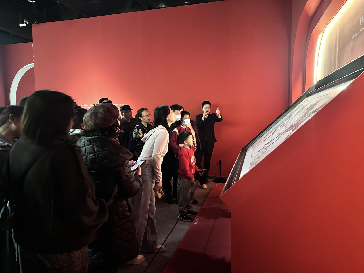 2026年2月19日,徐悲鸿纪念馆展厅内,家长带着孩子驻足聆听,观众们听得津津有味与讲解员频频互动。新华网记者 李晏 摄