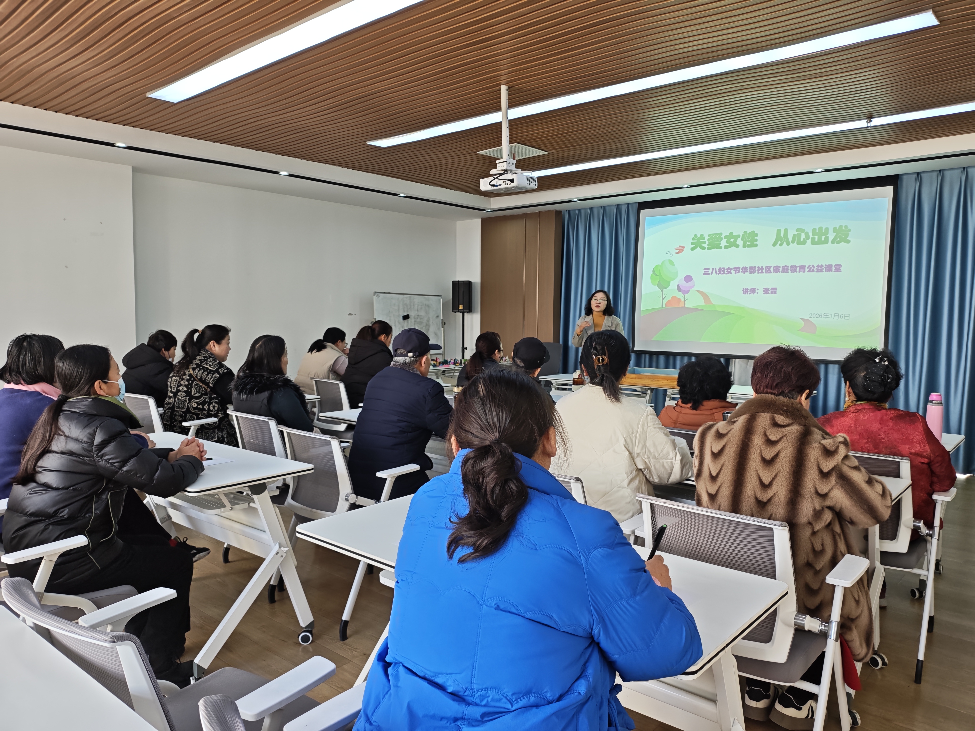 活动现场内容丰富、形式多样。社区特邀专业讲师张霞开展家庭教育讲座《关爱女性 从心出发》,围绕女性自我关爱、情绪管理、亲子沟通、家庭关系平衡等核心内容展开细致讲解。老师结合生活实际案例,用通俗易懂的语言,引导在场女性正视多重角色带来的压力,学会接纳自我、关照内心,懂得先爱自己,才能更好地爱家人。同时,针对家庭教育中常见的亲子矛盾、沟通难题,老师分享了实用的沟通技巧与情绪调节方法,倡导以平和包容的心态陪伴孩子成长,以智慧与温柔营造和谐幸福的家庭氛围。