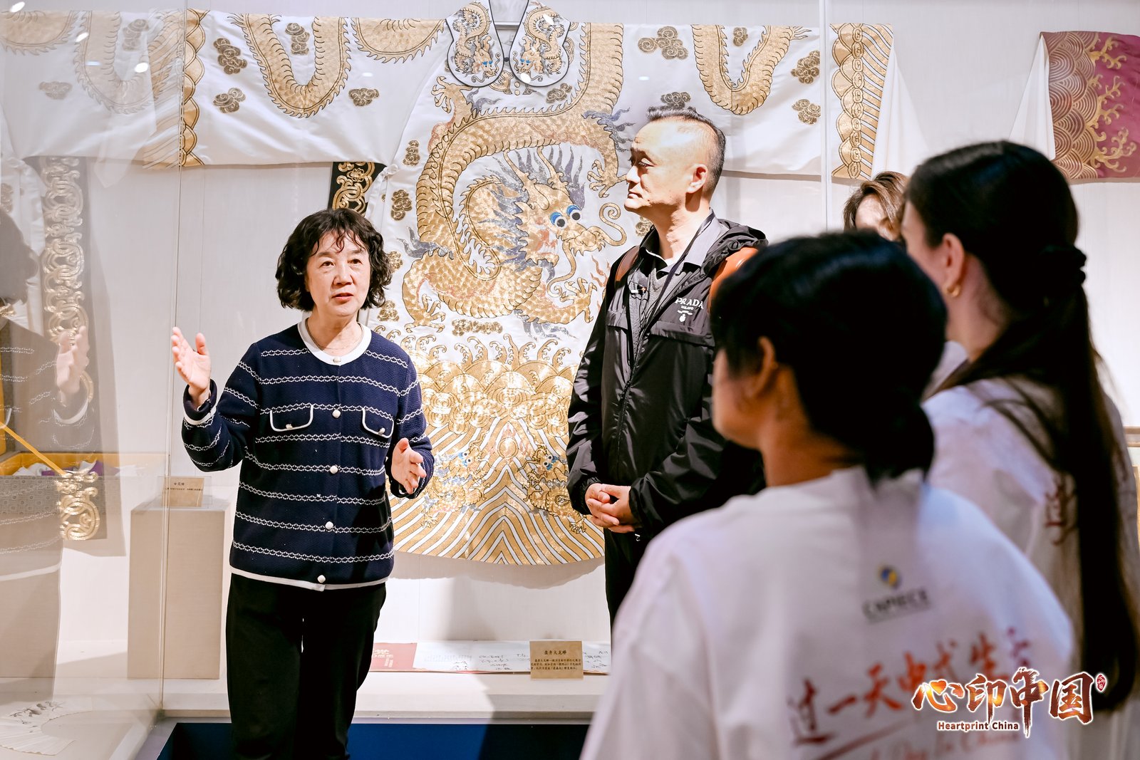 随后,留学生们来到北京剧装厂,探访戏曲服饰制作工艺。国家级非物质文化遗产项目剧装戏具制作技艺代表性传承人、中国工艺美术大师孙颖亲自为留学生们讲解,并手把手教授京绣技艺。留学生们拿起绣针,在丝绸面料上尝试刺绣,体验中国传统手工艺的精妙。一位来自美国的留学生感慨道:“小小的绣针里竟藏着如此深厚的文化,这和我们国家的刺绣完全不同,中国工匠的耐心和技艺令人敬佩。”