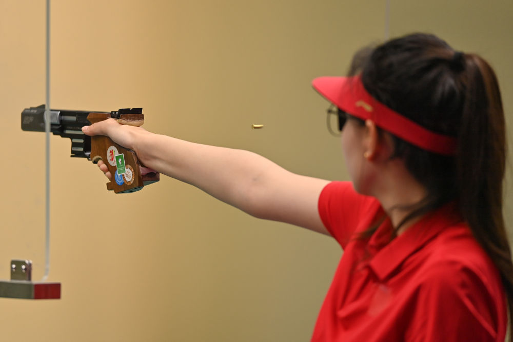 尽管桃桃的奖牌成色不如教练当年,但她的项目更具挑战。25米手枪,运动员需要承受的后坐力是女子步枪和手枪项目中最大的,规则也最复杂,业内俗称“慢+速”。资格赛第一阶段打6组、每组5发“慢射”,5分钟内完成一组;第二阶段是“速射”,要在3秒内打出一发,连打5发为一组,打6组,按环数排名。决赛只打速射,10.2环及以上算命中,按命中数排名。